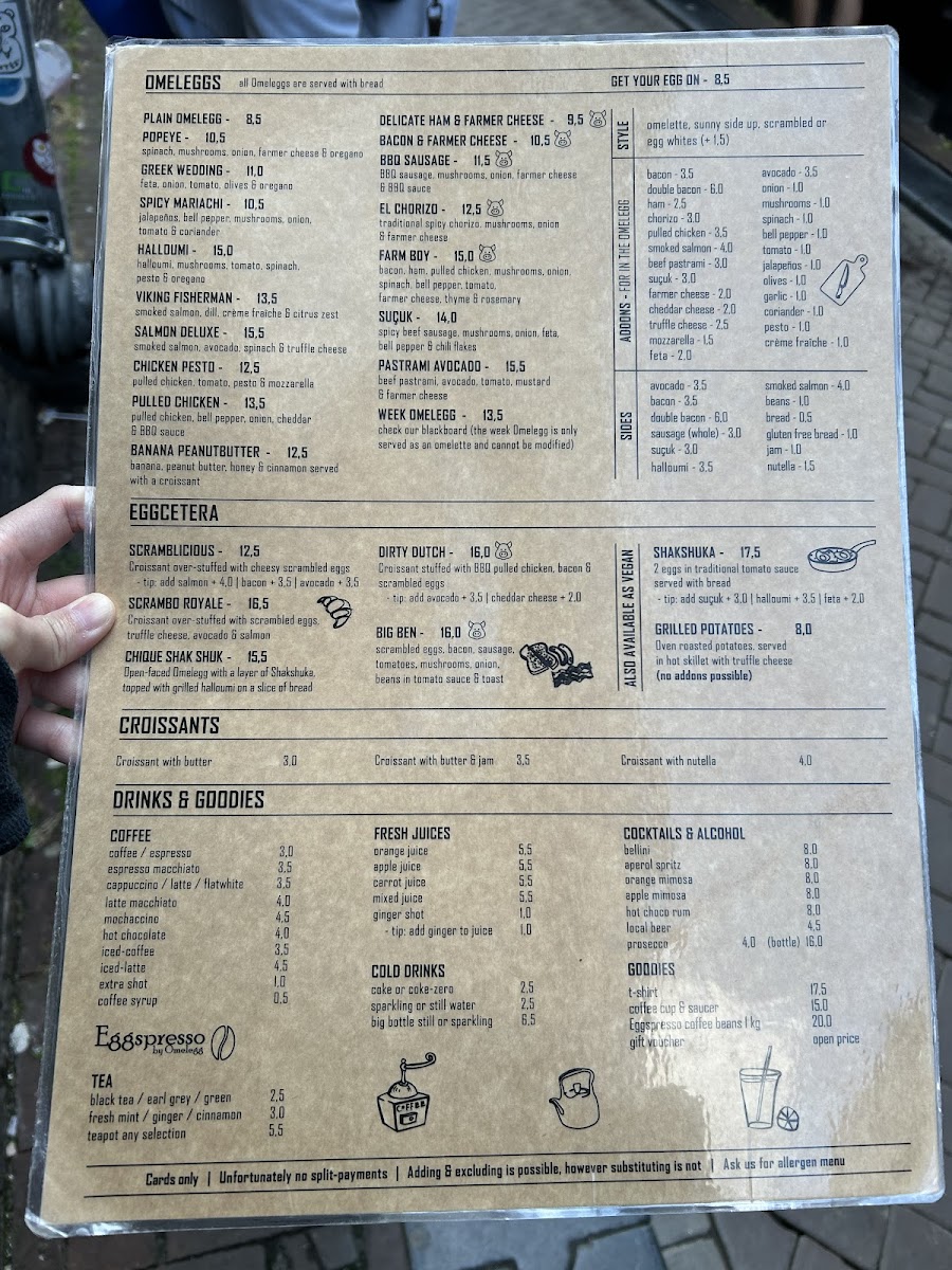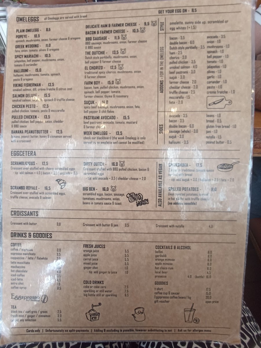 Welcome to Omelegg City Centre, a cozy haven nestled in the heart of Amsterdam at Nieuwebrugsteeg 24. This unique eatery is dedicated entirely to the art of omelette-making, offering a delightful breakfast experience from 7 AM to 4 PM on weekdays and 8 AM to 4 PM on weekends.